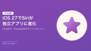 Bloombergの報道によると、iOS 27でSiriが独立したチャットボットアプリとして登場します。Dynamic Island統合、会話履歴の保存、他アプリとの連携強化など、ChatGPT・Claude対抗の新機能を徹底解説。