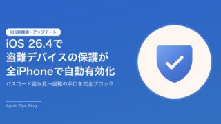 Appleが次期アップデート「iOS 26.4」で、セキュリティ機能「盗難デバイスの保護(Stolen Device Protection)」をすべてのiPhoneで自動的に有効化する方針であることが明らかになりました。