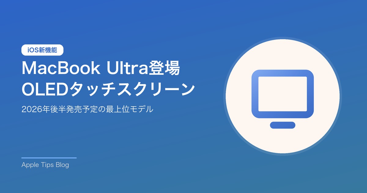 Bloombergのマーク・ガーマン記者によると、Appleは2026年後半に「MacBook Ultra」と呼ばれる新しい最上位ノートPCの投入を計画しています。MacBook Proの上位に位置する新ラインナップで、Mac初のOLEDディスプレイとタッチスクリーンを搭載する見通しです。